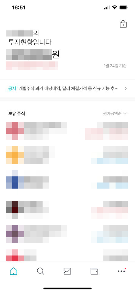 모든 가입 절차를 마쳤다면 미니스탁 앱을 실행합니다. 저는 이미 조금씩 투자를 하고 있어 여러분이 보시는 화면가 조금 다를 수 있습니다.