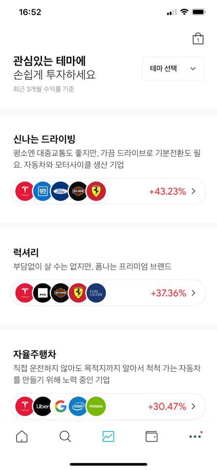처음 해외주식을 거래하는 경우 어떤 기업을 사야 하는지 수익률이 얼마나 좋은지 모를 수 있습니다. 미니스탁에서는 이런 초보 분들을 위해 쉽게 거래할 수 있는 서비스를 제공하는데 바로 테마에 투자하는 방법입니다.