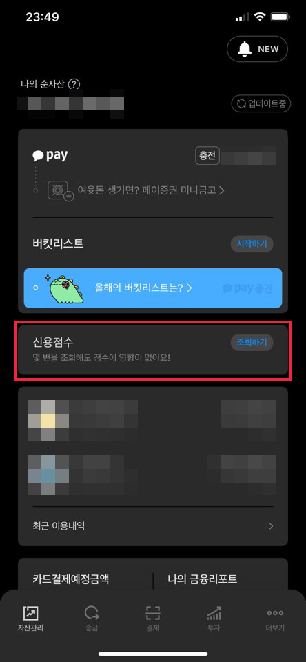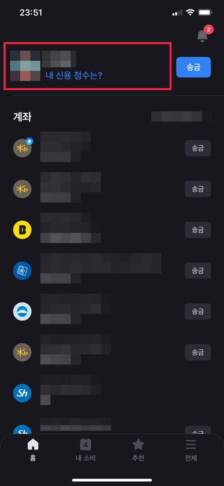 카카오페이와 마찬가지로 토스도 앱을 이용해 신용점수 조회를 할 수 있습니다.