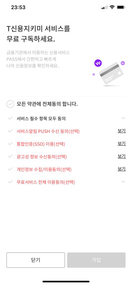 간단한 동의를 한 뒤 가입을 누르면 바로 PASS 신용점수 조회 결과를 볼 수 있습니다.