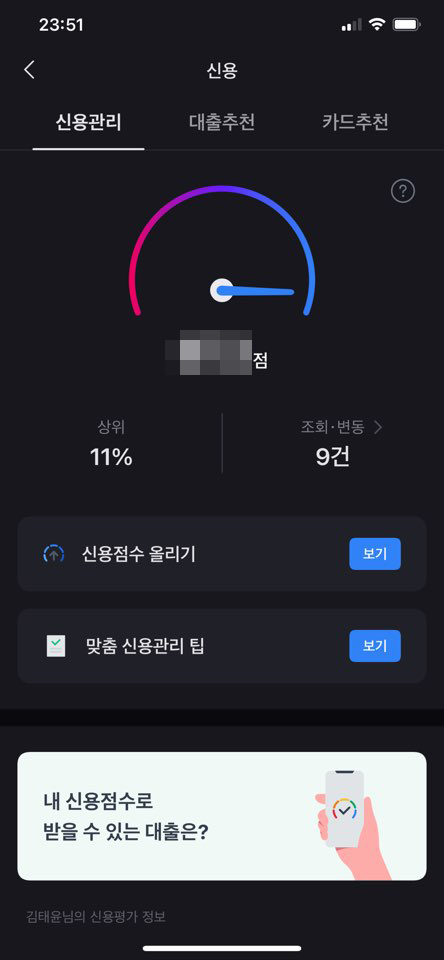토스는 특이하게 신용점수 올리기와 맞춤 신용관리 팁을 제공합니다.