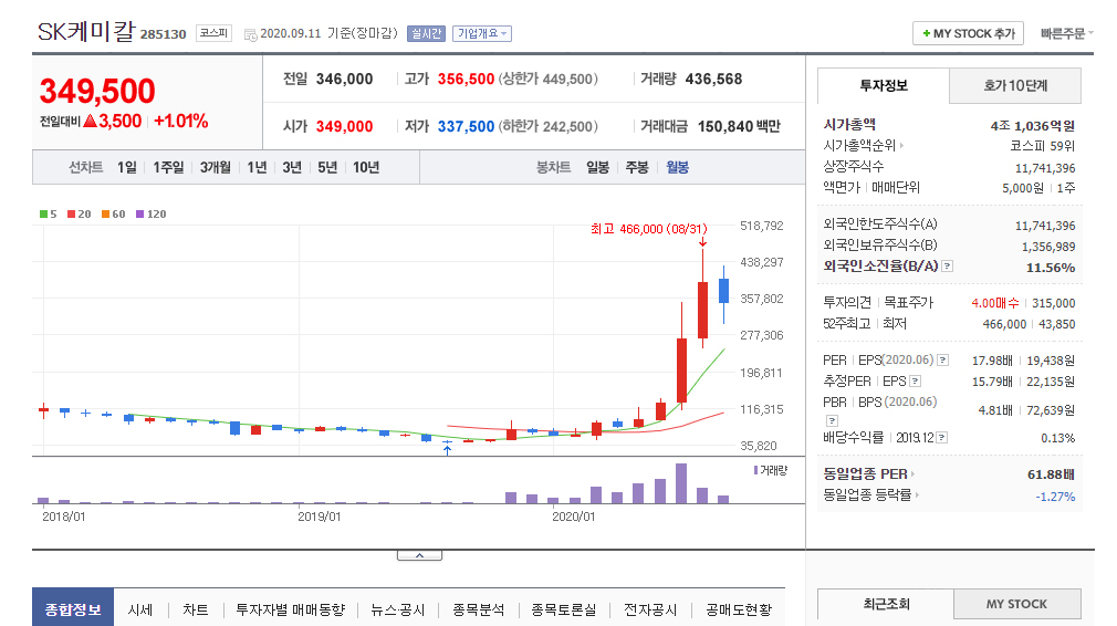아스트라제네카의 글로벌 파트너 중 하나로 위탁생산 계약을 체결했다는 소식에 많은 기대감을 불러 일으켰습니다. 최저가 대비 800% 수준으로 오른 것이 놀랍습니다. 위탁생산을 맡는다는 직접적인 계약을 체결한 만큼 가장 영향을 많이 받는 종목이 아닐까 생각됩니다.