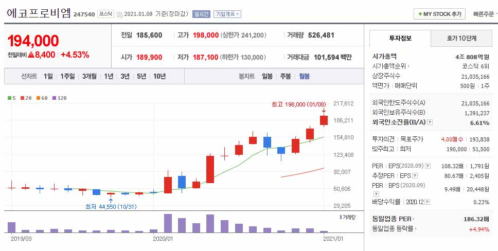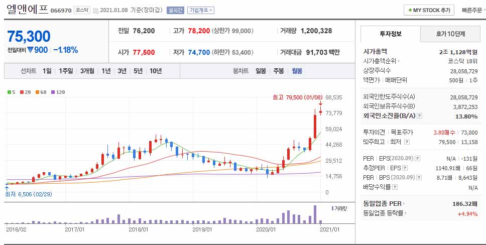 20년 12월 6일 LG에너지솔루션과 1조가 넘는 양극재 공급계약을 체결 하였고 테슬라 전기차용 배터리 공급에 대한 전망도 나오고 있는 상황이라 높은 관심이 쏟아지고 있습니다.